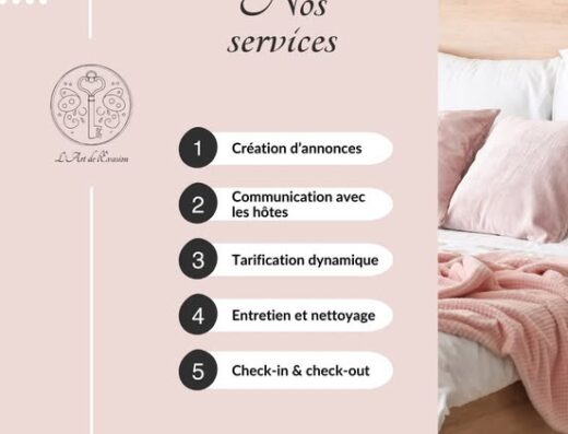 Aération des pièces et arrosage des plantes Communication avec les voyageurs Entretien et services de ménage Inspection intérieure et extérieure Mise en place du mobilier de jardin Mise en route du chauffage ou de la climatisation Organisation et rappel des opérations de maintenance et devis Passage systématique après intempéries